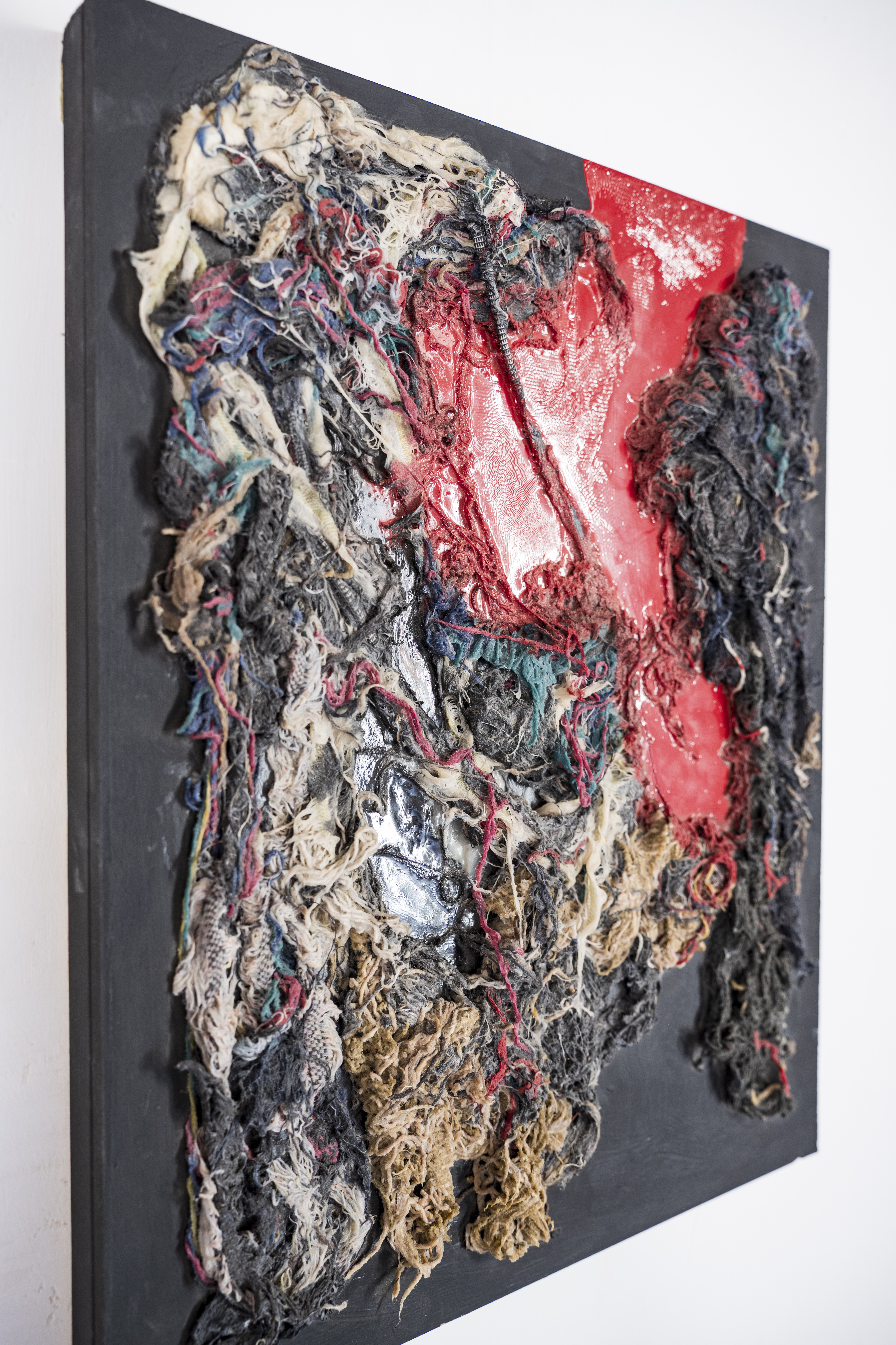 Claudio Marini belongs to the generation of the 20th century masters and is actually being celebrated by Romberg Gallery with a large solo show, thus confirming the exceptional vitality that characterizes since the beginnings his ‘angry’ works, provided with a strong polemic impact. A non-figurative, gestual, sign, aggressive, black and blood-red colours, heterogeneous materials, including oil, synthetic coatings, lumps of unidentifiable elements, often recovered from waste. In short, strongly dynamic and materic works, aggressively protruding from their support. But nothing redundant or haphazard, since the artist fully understands and practices the discipline of composition, that is in turn crucial for catching the meaning the work wishes conveying.