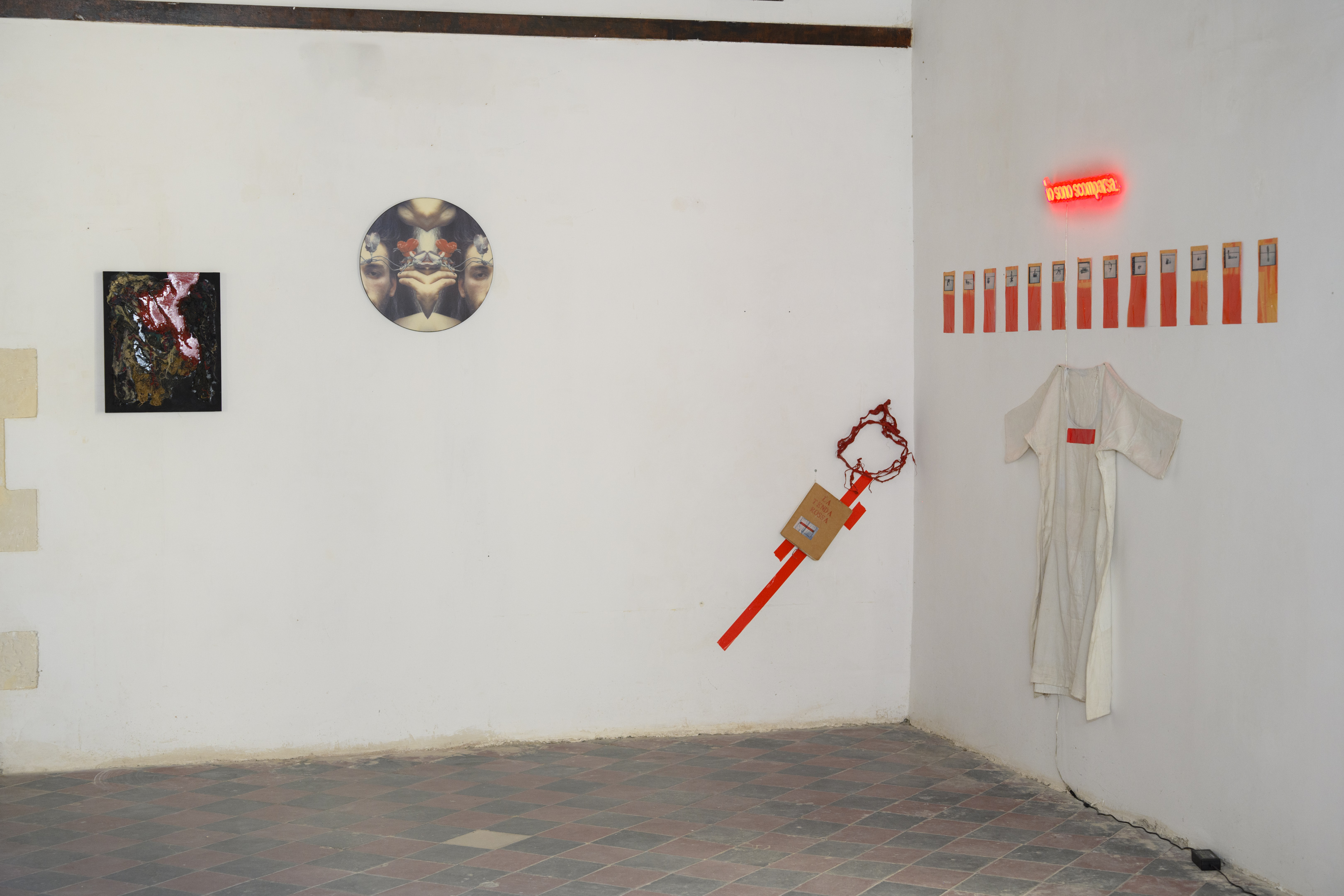 Nel Senza titolo in mostra, infatti, la metafora di un mondo caotico o, forse, della fine del mondo nel buio e nel sangue, è inequivocabile; e per chi conosce Marini, il sottinteso imputato di caos e fine non è naturale, ma umano, anzi, più precisamente, socio-politico. Al visitatore il compito di identificarlo, ovviamente con tutta la libertà, e le differenze, delle idee, convinzioni, sensibilità, personali.